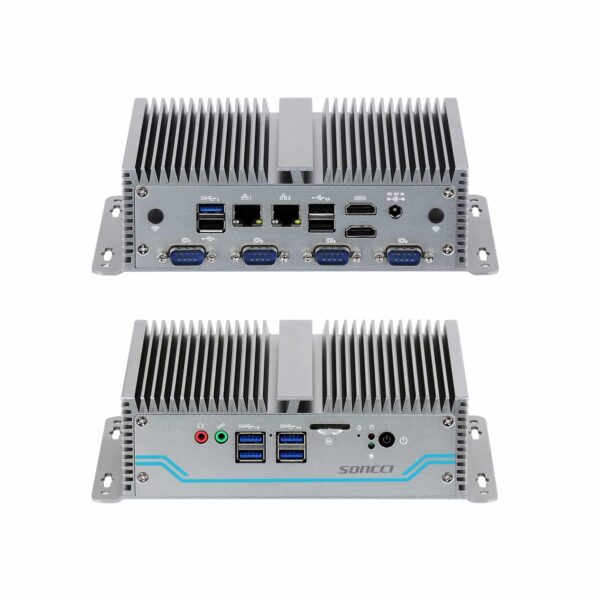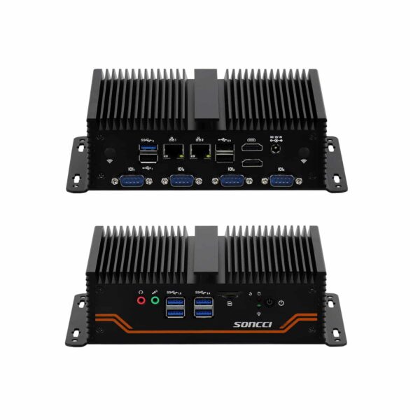 SCI-S5010C10 10串口 GPIO 宽压 三显示 嵌入式工控机 搭载intel Celeron/Core处理器,支持DDR3/4内存,并在2.5寸SATA、mSATA、M.2存储提供多种选择。它配备了丰富的接口和按键,有LAN、COM RS232/485、USB、GPIO、上电开机拨钮开关、SIM卡槽、HDMI+VGA+DVI三显示等,支持从9-36V宽电压范围直流输入,可扩展WIFI/蓝牙/4G模块,支持Windows和Linux系统。